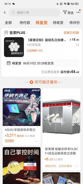 我买了两瓶,给我发了两包,问淘宝说是代挂链接,说给我补两包已经个把礼拜了,问他单号也没有
