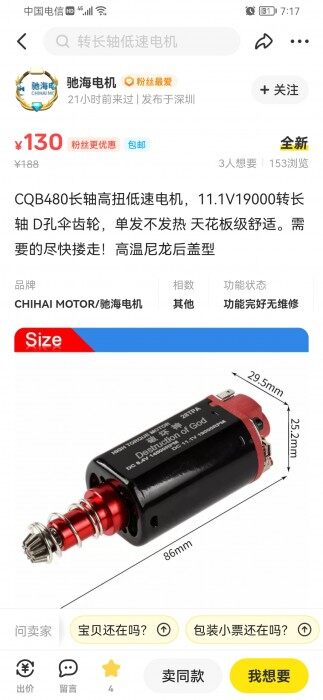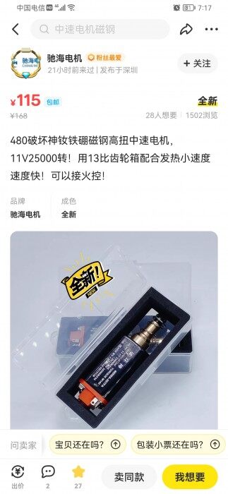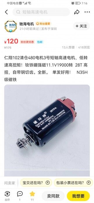 原厂电机也就2万2到2万7之间,高扭电机别买池海的,贴标货还贵,单发稳只能火控,要不然只能低转速,而且高扭不是发热慢,取决于你手速快不快,扣的快发热还是快,不如无刷