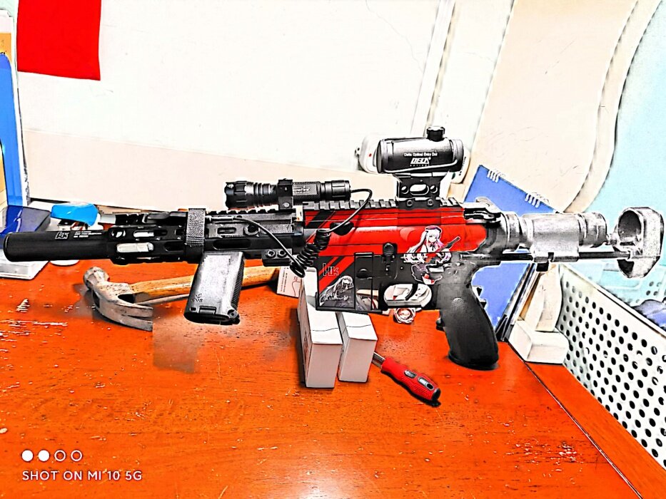 同款消音,弹匣可以白色蜡笔涂下刻字味更冲