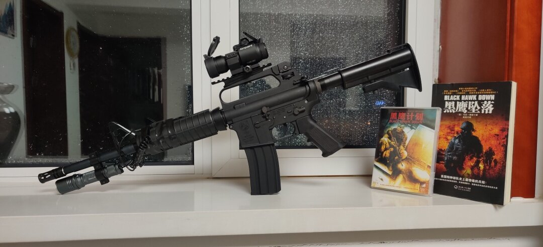 神火6X手电肯定是找不着了,还好电影用的M2瞄而不是历史上的aimpoint2000,让我在这一点上得以还原,机匣是FTM的机匣,奉上我手里的仅有CAR15和M4