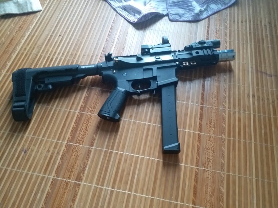 是的,美国法律比较清晰严紧。不似国内话不说明,法律模糊,氵玩具不让玩又行,让玩又行。这种托是可绑手,可单手持枪,装上算手枪类。