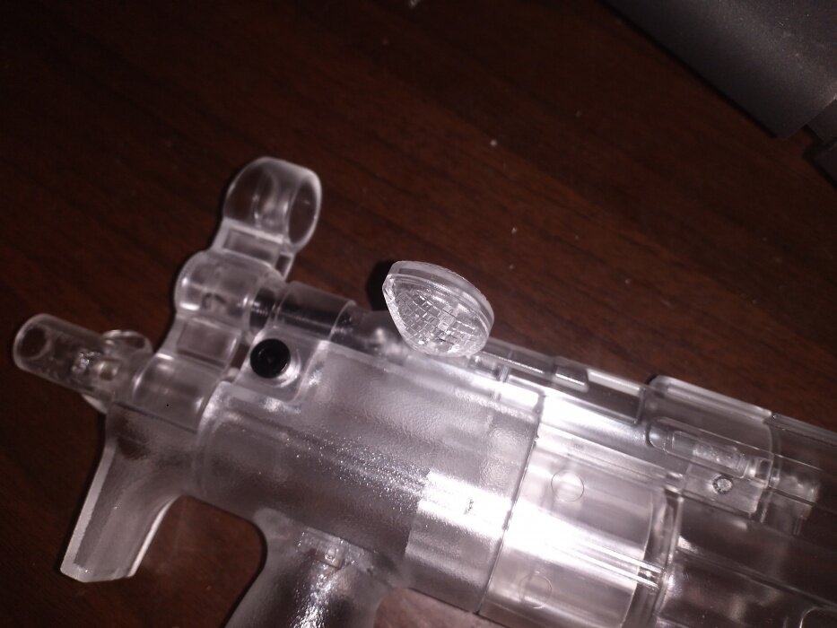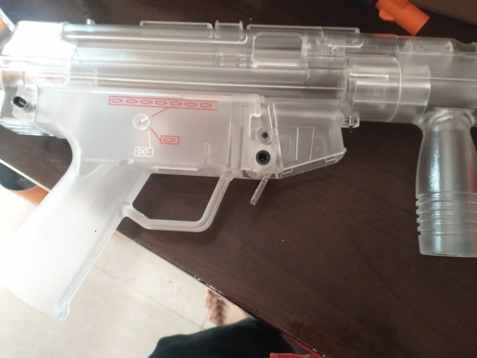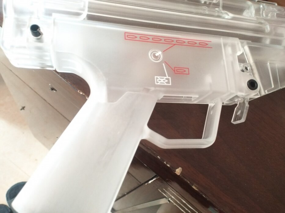 PC材质相比于尼龙,具有容易成型、触感细腻、外表完成度高等优势。(最主要是要比尼龙加工便宜)而对于这支MP5来说,PC材质的优势也正好利用上了。