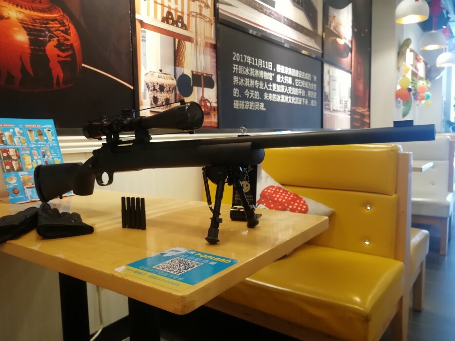 怪不得嘞,话说你在你家店里那么嚣张嘛扛着大狙往桌上一摆。